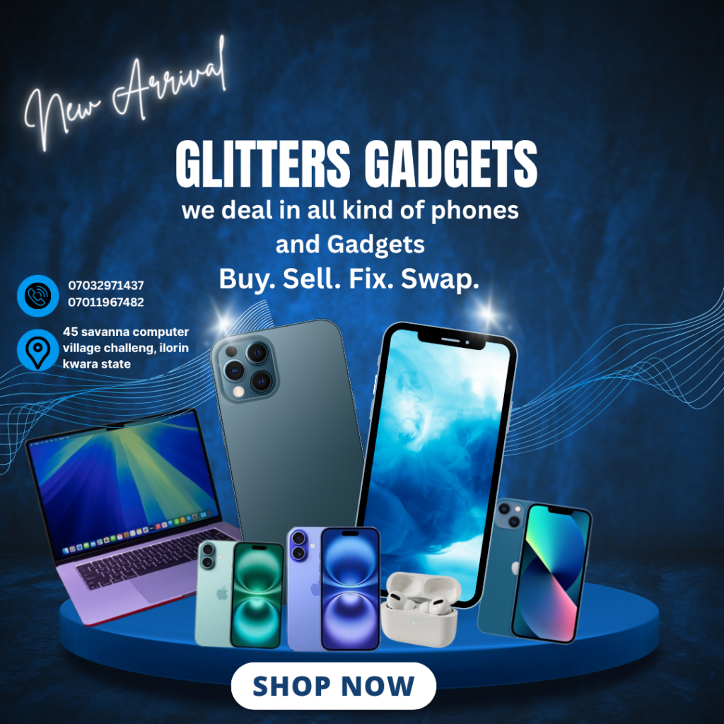 Welcome to Glitters Gadgets your trusted hub for premium technology solutions in Lagos and Kwara State, Nigeria. At Glitters Gadgets, we specialize in buying, selling, fixing, and swapping a wide range of devices, including smartphones, laptops, game consoles like Xbox and PlayStation, sound systems, and other top-quality gadgets. Whether you’re looking for reliable repairs, affordable upgrades, or high-performance devices, our team is committed to delivering exceptional service and unbeatable value. With expertise you can trust and products you’ll love, Glitters Gadgets is here to keep you connected and empowered in today’s digital world..